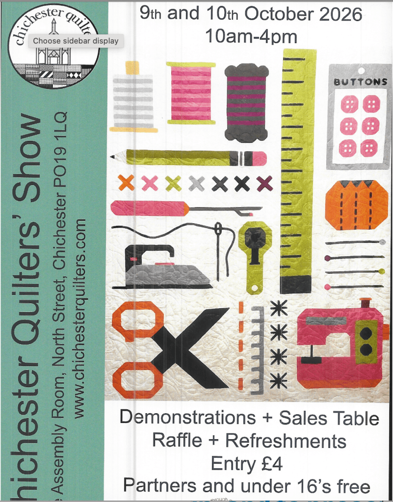 Our next Quilt Show will be 9th and 10th October 2026 10am – 4pm at the Assembly Room, North Street Chichester